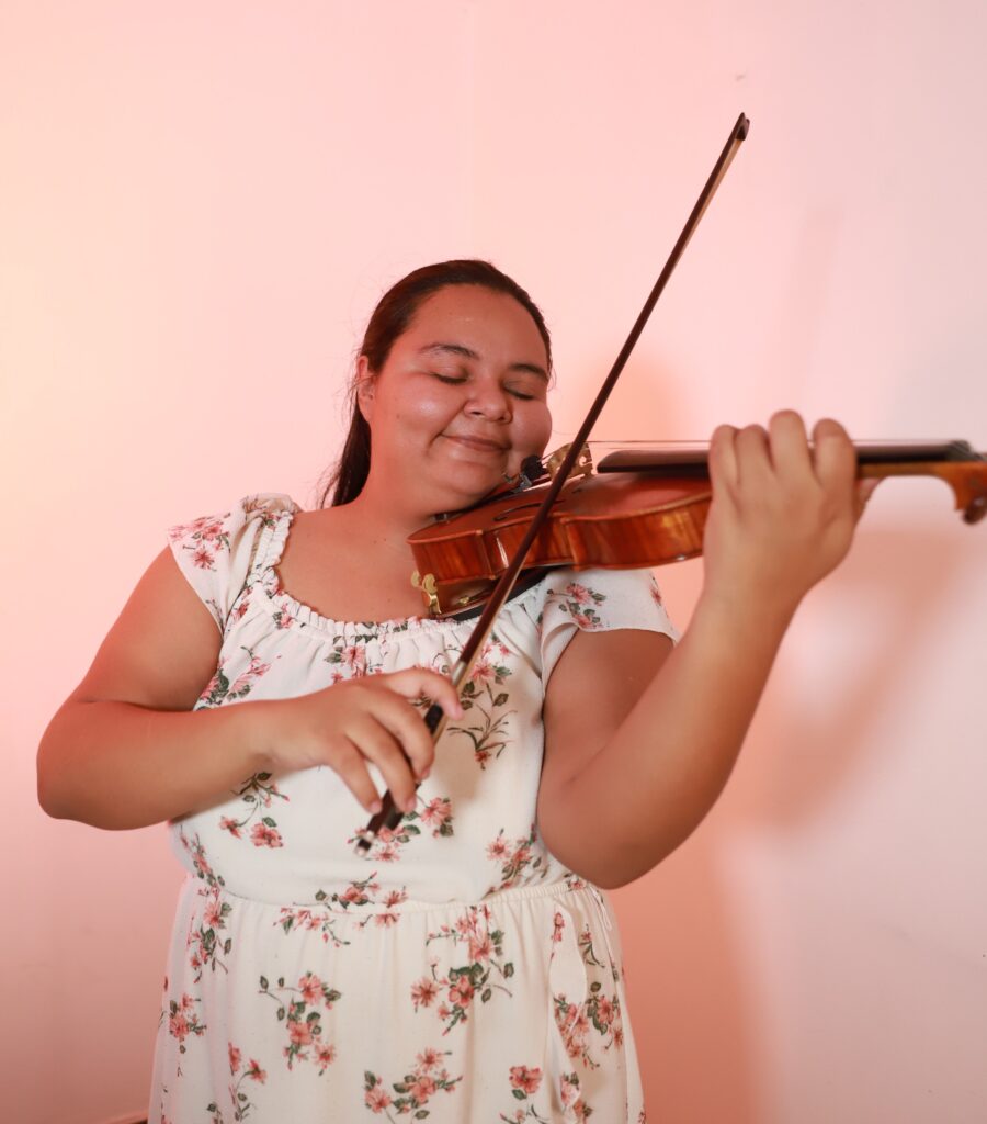 Sandra Rivera violinista y educadora musical, comprometida con la formación de nuevas generaciones y el trabajo social a través de la música. Se especializó en educación musical en Colorado (EE. UU.), obtuvo una Maestría en Ejecución del Violín en la Universidad de Texas en El Paso y un Graduate Certificate en Innovación en Artes del Global Leaders Institute. Ha sido miembro de la El Paso Symphony Orchestra y concertina en diversas orquestas en El Salvador, Estados Unidos y la República Checa. Actualmente, es profesora de violín en la OSSSC y además dirige un estudio privado de 30 estudiantes. Se ha formado con destacados maestros como Cathy Elias, Manuel Hernández, Max Martínez, Carlos Jiménez, Carlos Elías, Alejandro Gómez Guillén, Stephanie Meyers y Misha Vayman.